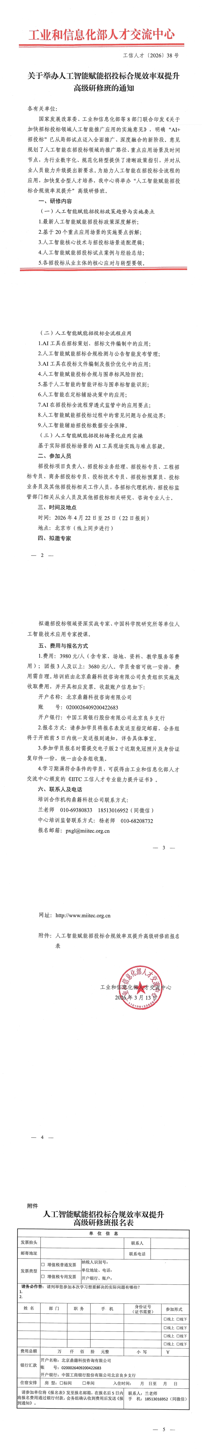 关于举办人工智能赋能招投标合规效率双提升高级研修班的通知