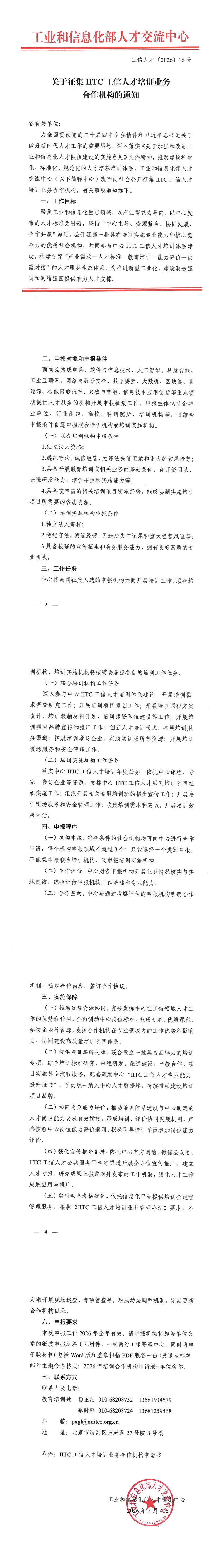 关于征集IITC工信人才培训业务合作机构的通知